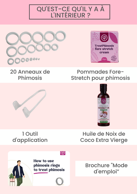 Phimose Bahre Ring Kit (20 Ringe) mit extra Vergine Kokosöl, Werkzeug und Benutzer guide